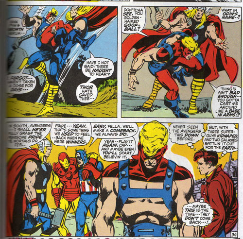 A mais famosa saga dos Vingadores foi “A Guerra Kree-Skrull“, que retrata uma batalha entre duas raças alienígenas pelo domínio da Terra (que ocuparia uma posição espacial estratégica entre os dois impérios), publicada na revista da equipe no distante ano de 1971, escrita por Roy Thomas e desenhada por Sal Buscema e Neal Adams. (Esta história clássica está disponível no Brasil num encadernado chamado “Os Maiores Clássicos dos Vingadores Vol. 01”, disponível nas livrarias).