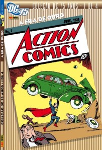 O volume da Panini de Coleção DC 75 Anos: A Era de Ouro traz na capa uma reprodução de uma outra capa, a de Action Comics 01, de junho de 1938, com a primeira aparição do Superman (por Jerry Siegel e Joe Shuster), o “marco zero” da Era de Ouro, e cujo conteúdo inaugura o volume da Panini. Entre as outras histórias, as primeiras de Batman (por Bob Kane), em 1939; Capitão Marvel (Shazam), Flash, Arqueiro Verde e Mulher-Maravilha, além da Sociedade da Justiça, equipe que reuniu vários personagens, em 1940; e o primeiro confronto de Batman com o Coringa, daquele mesmo ano.