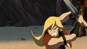 Como a trama se passa na juventude dos deuses, Thor ainda não empossa o martelo mágico Mjonir, mas uma espada. A capa do DVD – ilustrada por Alex Ross – termina por evocar a He-Man, Conan e outros personagens que usam espadas.