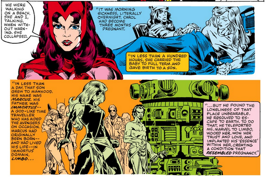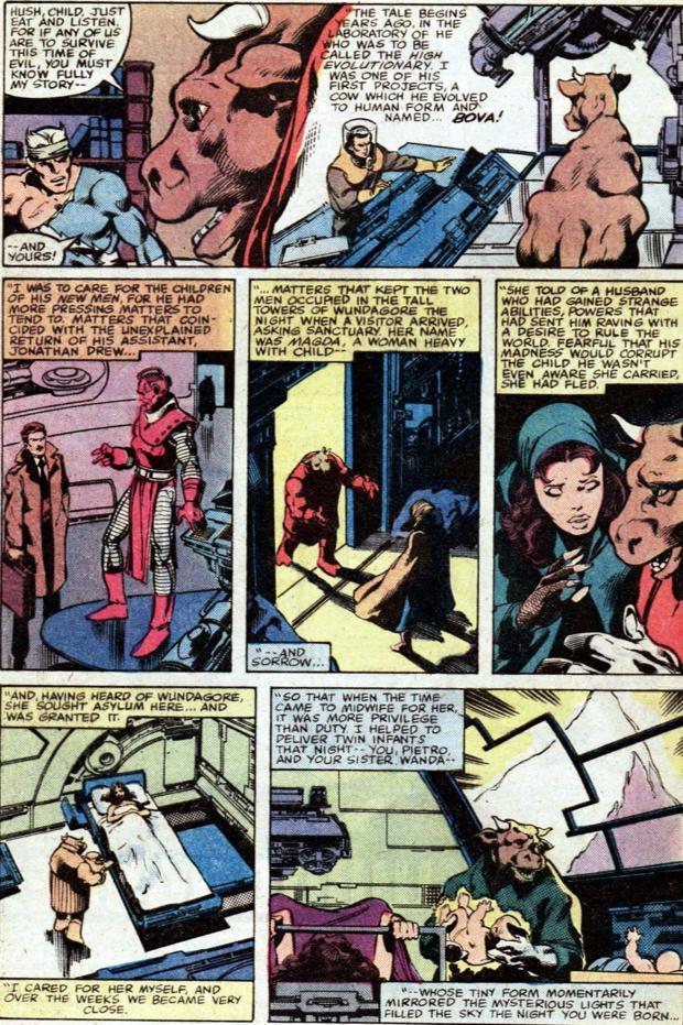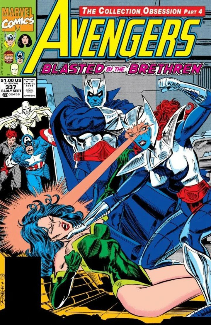 Já Feiticeira Escarlate e Mercúrio são Wanda e Pietro Maximoff, irmãos gêmeos criados por ciganos na Europa Oriental, que apareceram pela primeira vez na revista X-Men 04, de março de 1964 por Stan Lee e Jack Kirby, como membros da Irmandade de Mutantes liderada pelo vilão Magneto. Aquela história deixava claro que a dupla tinha uma dívida de sangue com Magneto (que os salvou de serem mortos por seu próprio povo, que atribuíam seus poderes mutantes à bruxaria), mas não concordavam com as atitudes extremas deles (inclusive, secretamente salvando os X-Men no fim). Mesmo assim, ainda fizeram outras aparições ao lado do grupo de vilões (em X-Men 05, 06 e 11) e até enfrentaram Thor em sua revista.