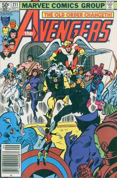 A primeira grande mudança na revista ocorreu em Avengers 16, de maio de 1965 (novamente por Lee e Kirby): os quatro membros originais da equipe (Homem de Ferro, Thor, Gigante e Vespa) decidem sair do time e deixar o Capitão América para treinar uma nova formação, composta por três ex-criminosos: Gavião Arqueiro (que lutou contra o Homem de Ferro) e os irmãos gêmeos Feiticeira Escarlate e Mercúrio (ex-membros da Irmandade de Mutantes de Magneto, inimigos dos X-Men).