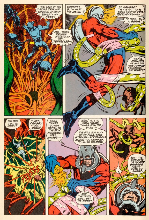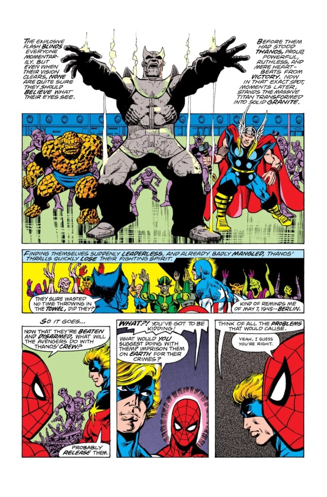 No fim das contas, de modo algo inexplicável, o verdadeiro escalador de paredes aparece para ajudar e confronta o impostor mecânico e o derrota. Esses elementos transformam, de modo algo bizarro, a aventura em muito mais uma história do Homem-Aranha do que dos Vingadores, o que era realmente muito estranho, em vista que o grupo de heróis era uma atração relativamente nova dentro da Marvel. Parecia que a revista já estava cansada depois de apenas começar.