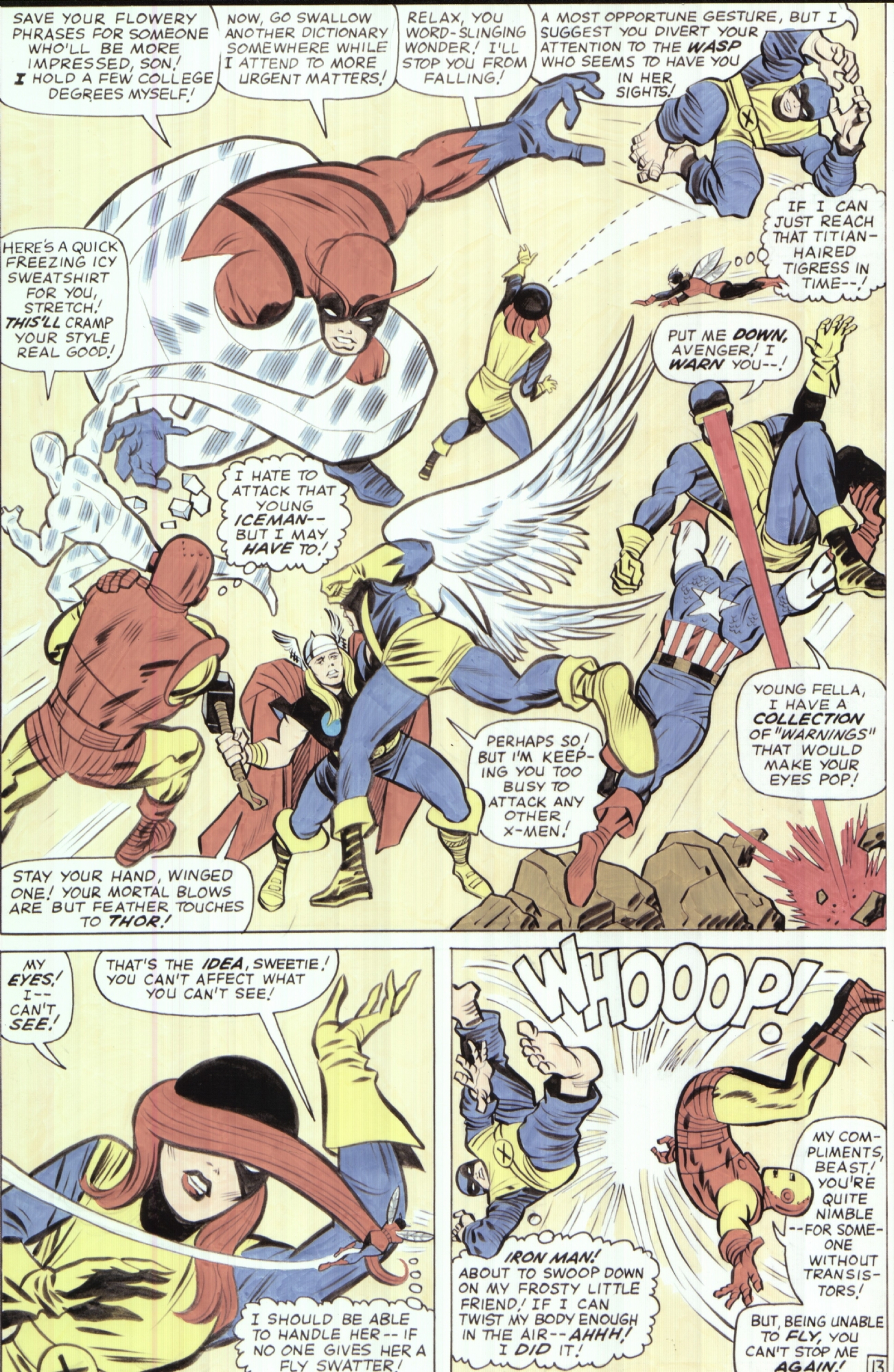 Àquela altura, Jack Kirby era o principal ilustrador da Marvel Comics e cuidava de inúmeras revistas ao mesmo tempo, como as histórias de Quarteto Fantástico, Thor, X-Men, Gigante & Vespa, Nick Fury e Capitão América (que passaria a ter em breve suas próprias aventuras paralelas publicadas na revista Tales of Suspense), além de fazer a maioria das capas da editora, inclusive de personagens que não desenhava, como Homem de Ferro e Demolidor. O tempo escarço o impedia de se dedicar a uma revista com tantos personagens e detalhes. Querendo mais tempo para se dedicar às histórias que realmente gostava – especialmente do Quarteto, de Thor e do Capitão América – Kirby terminou se afastando de Avengers, embora tenha continuado a fazer suas capas por bastante tempo. Kirby ainda voltaria à arte interna da revista brevemente, nos números 14, 15 e 16, num momento crucial, como veremos.