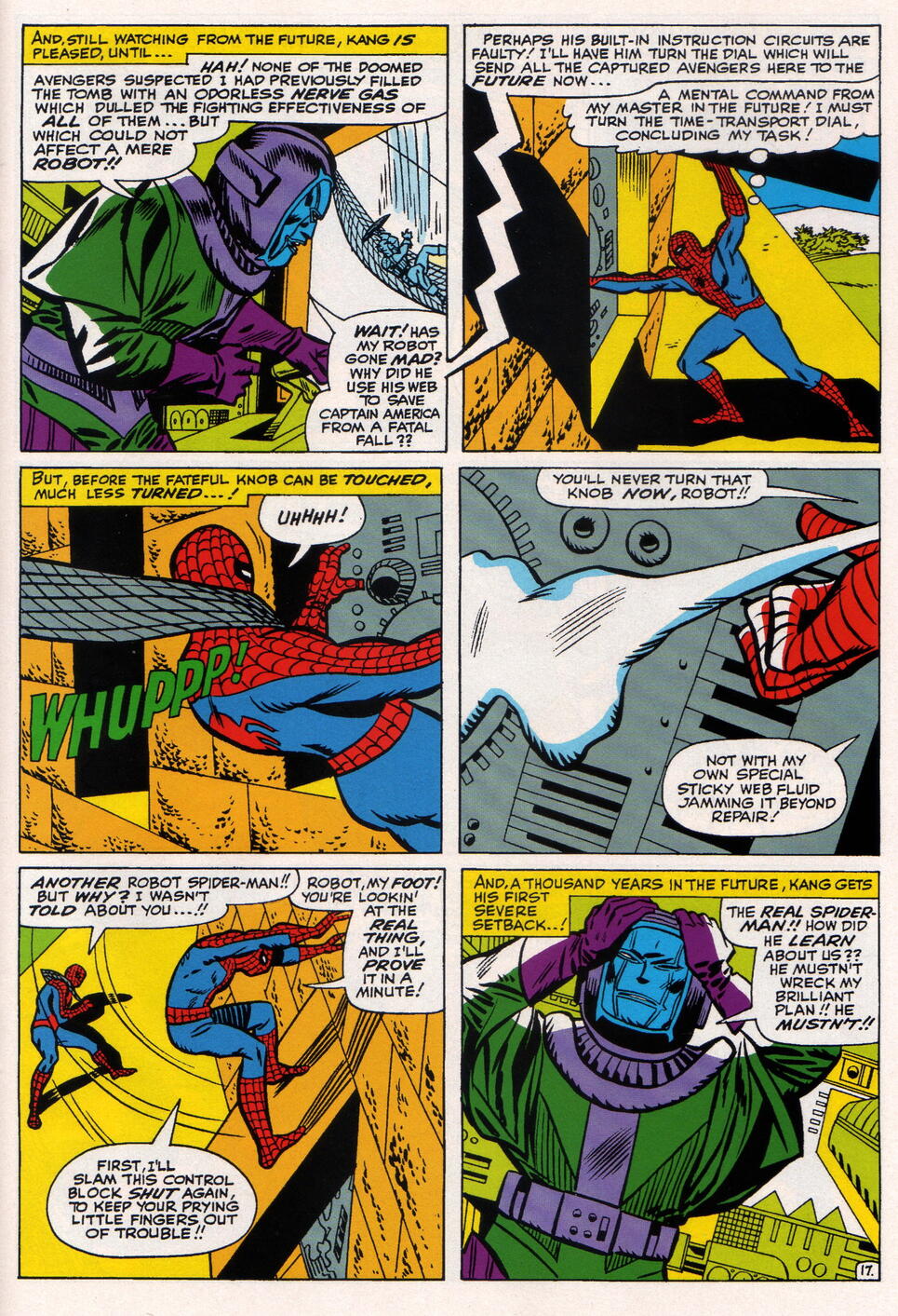 Kang, o conquistador já está de volta na edição 11, dessa vez enviando um robô imitando o Homem-Aranha (de modo a envolver pelo menos de modo casual esse personagem tão popular, cujas aventuras eram produzidas por Stan Lee e Steve Ditko). Ao contrário de sua estreia bombástica, esta aventura não é grande coisa: Kang envia do futuro o robô-aranha fingindo que quer entrar para o grupo e os levando até um templo asteca no México para uma cilada, e o Homem-Aranha fake quase derrota o grupo, atacando seus membros separadamente. Toda ação é basicamente uma propaganda do amigão da vizinhança e de como ele seria páreo para todo o time.