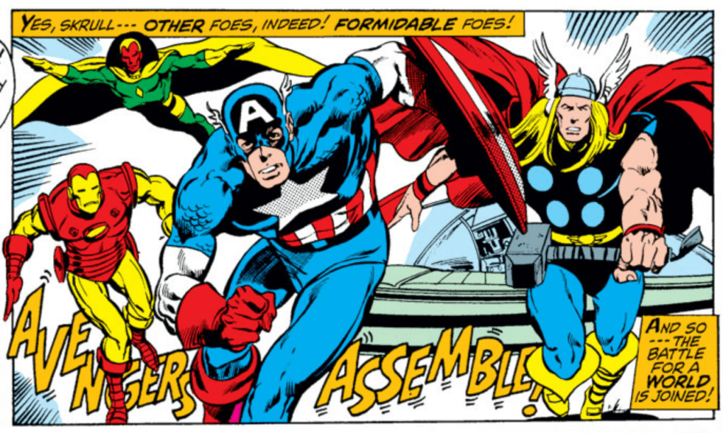Dois anos após o início do Universo Marvel, a editora já tinha um bom punhado de personagens e Stan Lee decidiu fazer uma nova equipe reunindo heróis já existentes. Em setembro daquele ano, Lee e Kirby lançaram a revista The Avengers 01, em setembro de 1963, que trazia uma chamada de capa anunciando a união de Thor, Homem de Ferro, Hulk, Homem-Formiga e Vespa contra o deus da trapaça, Loki.