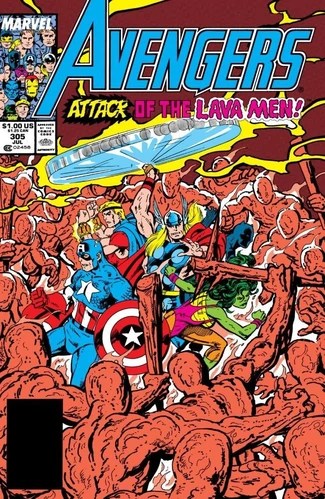 Avengers 05 é uma sequência direta de FF 25, começando com os Vingadores reparando os estragos causados na Mansão, mas os oponentes são os Homens-Lava (criaturas que haviam aparecido nas histórias de Thor) e, novamente, contando com a participação especial do Hulk. Novamente, há uma rápida batalha com o golias verde, mas os Homens-Lava têm bem mais espaço.