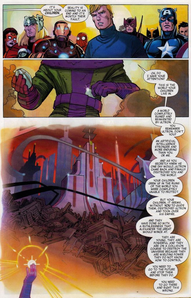 O armamento avançado de Kang é o suficiente para derrotar os Vingadores (capturando todos os membros, à exceção da Vespa) e a trama mostra ele colocando o planeta num tipo de domínio e a ONU promovendo uma paz global temporária para buscar meios de derrotá-lo; mas é a ação da Vespa em conjunto com a Brigada Juvenil de Rick Jones quem conseguem realmente abrir um flanco na defesa do vilão, após se infiltrarem sua nave fingindo que iriam lhe obedecer.