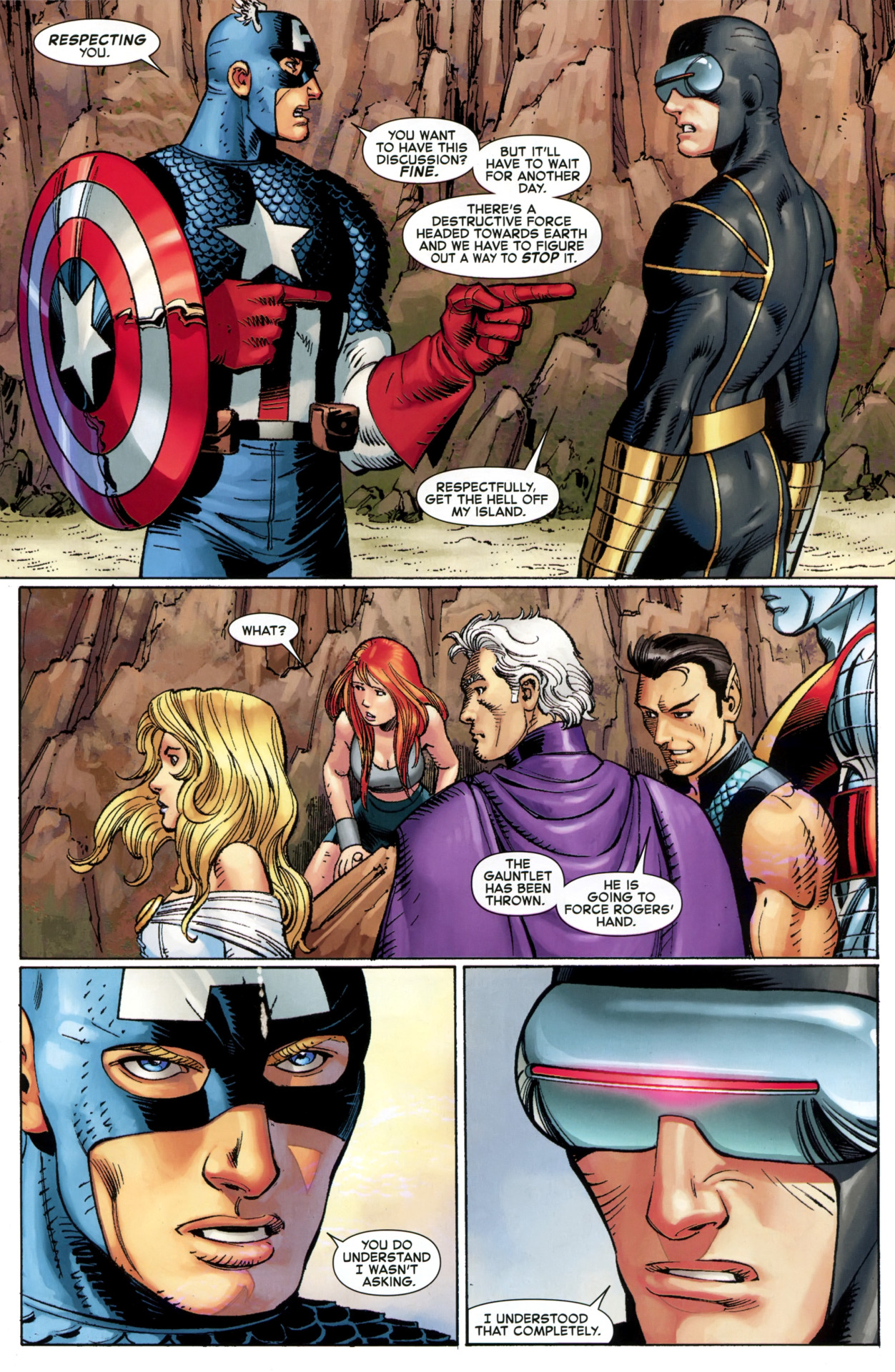 Seguindo a tradição que ele próprio criou, Stan Lee também tratou de divulgar a equipe em outras revistas, de modo que os Vingadores fizeram participação especial em X-Men 09, na qual as duas equipes ensaiam um confronto. Na verdade, o encontro é quase um embuste: enquanto os heróis mutantes estão no encalço de um vilão chamado Lúcifer, literalmente as duas equipes cruzam o caminho uma da outra e – no melhor “estilo Marvel” – saem brigando logo de cara. A batalha é bastante rápida, pois Charles Xavier se comunica telepaticamente com Thor e resolve a situação.