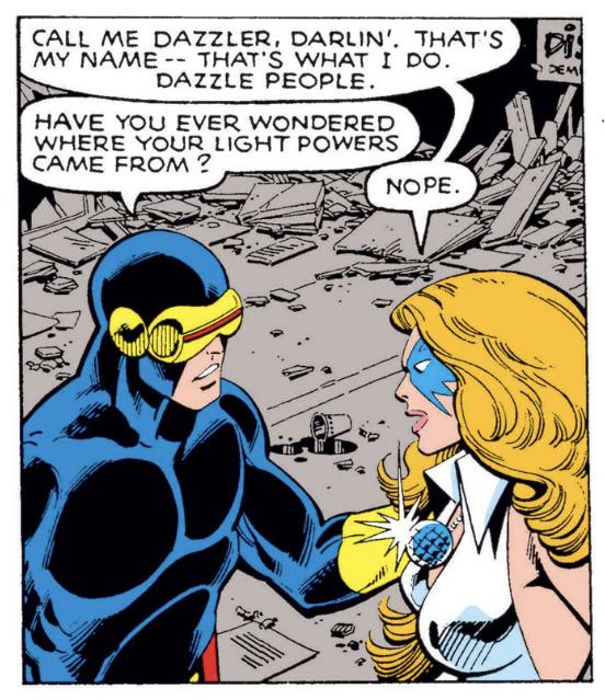 Unido aos X-Men, Xavier consegue coordenar a ação para que desarmem a bomba – Ciclope usa um feixe de energia fino como um fio de cabelo para desabilitar o fusível – e Lúcifer foge. Nesta edição, como na anterior, a Garota Marvel usa sua máscara original.