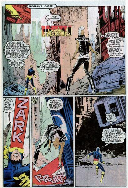 Uncanny X-Men 199 começa com uma gravura bombástica de John Romita Jr. com Ciclope treinando na Sala de Perigo? Como assim?