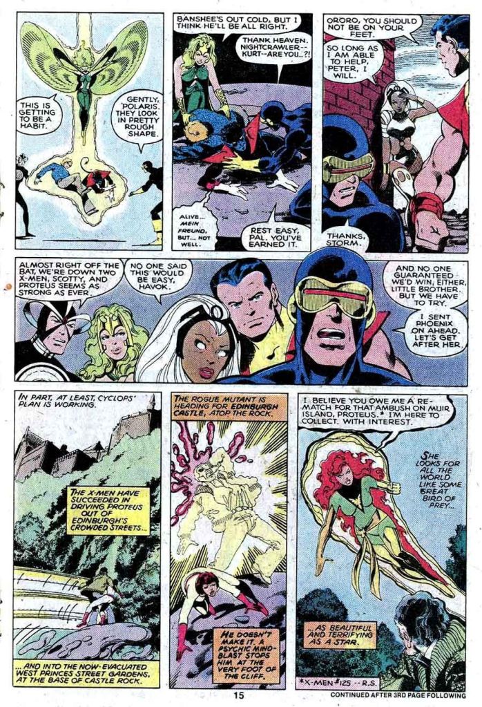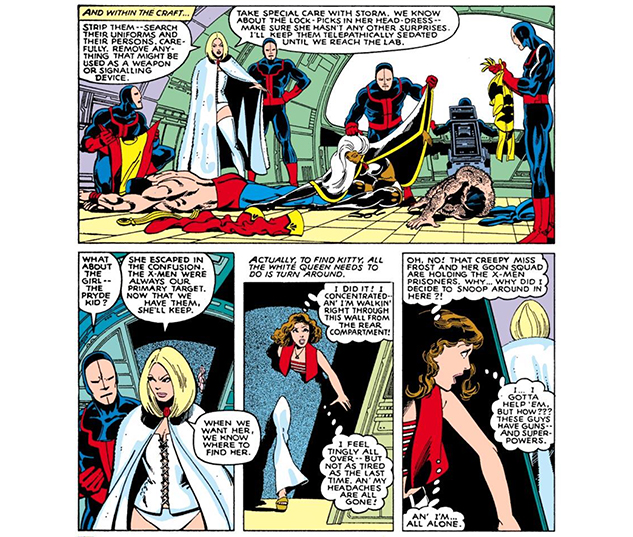 Na edição 177, Corsário, os Piratas Espaciais e Lilandra finalmente parte para o espaço, deixando um Xavier de coração partido, mas resoluto com sua nova responsabilidade com os Novos Mutantes, enquanto os X-Men sofrem um ataque da Irmandade de Mutantes de Mística, Sina, Blob, Pyro e Avalanche, no que resulta em Colossos ser atingido por nitrogênio líquido e virar uma estátua congelada e no eminente risco de morte, no número 178. No meio disso, os Morlocks também atacam, querendo fazer Kitty Pryde cumprir a promessa que fez a Caliban, quando ele ajudou os X-Men tempos atrás, de que faria o que ele quisesse… E ele queria casar com Kitty! Mas na edição 179, ele percebe que ela está infeliz com o arranjo e a livra da promessa, ao mesmo tempo em que o Curandeiro cura Peter de sua condição.