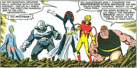 Os primeiros números de X-Men traziam justamente confrontos dos X-Men com a Irmandade de Mutantes de Magneto, procurando delinear bem as personalidades de cada um de seus membros e os ideias que perseguiam.