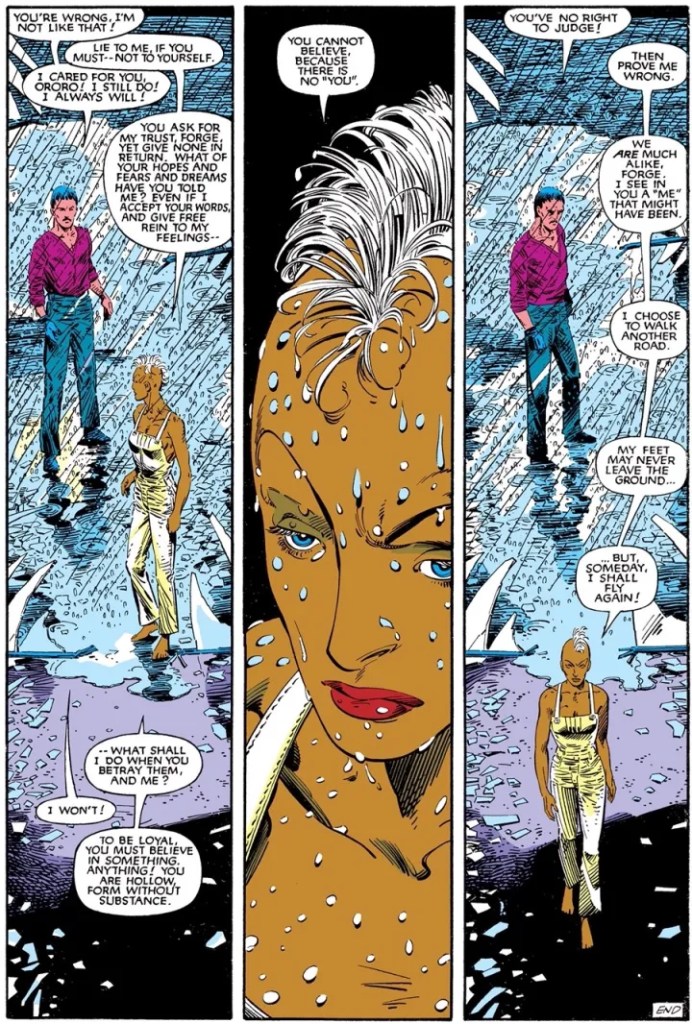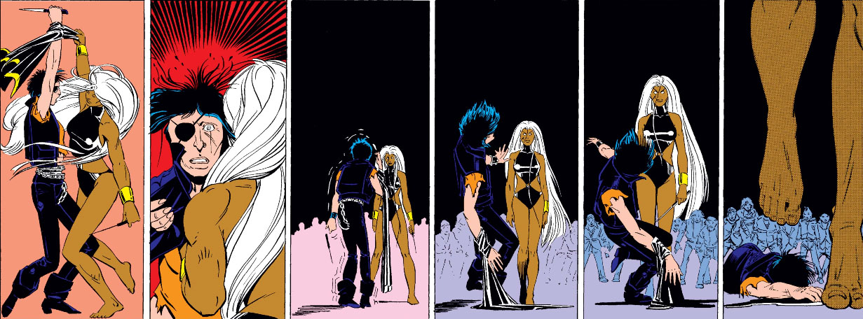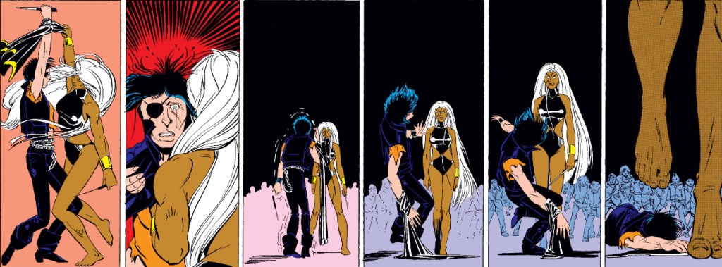 Uncanny X-Men 198 é outro daqueles números poéticos, ilustrado por Barry Windsor-Smith no qual vemos Ororo lutar pela vida e contra a savana africana, encontrando as desventuras de uma tribo isolada no meio do caminho. Mas ela sobrevive!