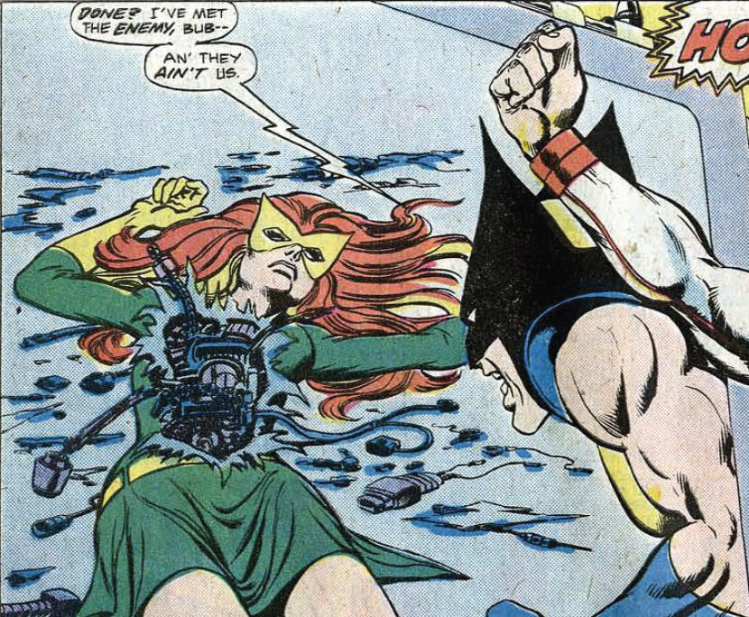 Ah, e vemos um breve retorno da capitã Lee Forrester, que salva em alto mar um homem de ser atacado por tubarões… e ele é ninguém menos do que Magnus, o Magneto! Ele se lembra dela e daquela aventura já de quase 30 edições antes e diz que lhe deve a sua vida.