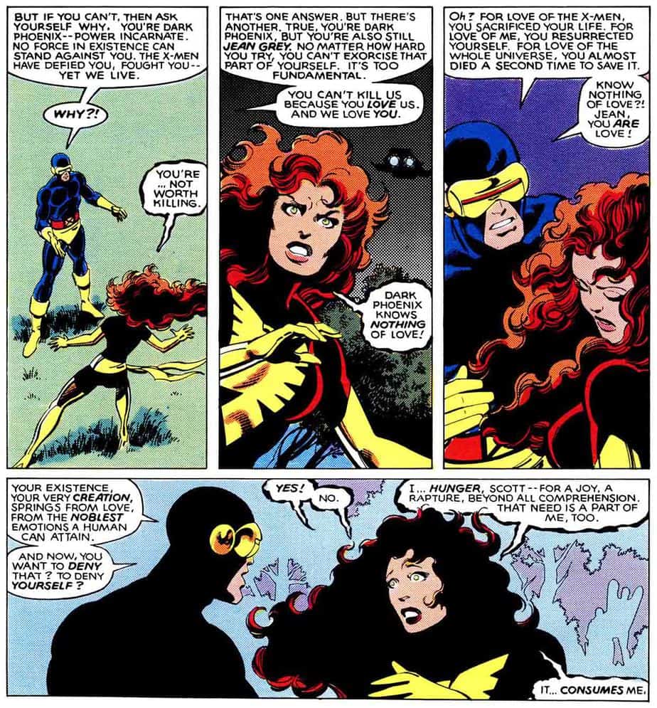 Até hoje, a introdução de Madelyne Pryor e seu casamento com Ciclope são dois dos tópicos mais controversos da histórias dos X-Men. Claremont insistiu em entrevistas posteriores que sua ideia original era dar a Scott Summers um tipo de “final feliz” que os personagens de quadrinhos nunca têm, por viverem a vida inteira em batalha. O (então ex) líder dos X-Men voltaria para eventos especiais, mas viveria uma vida tranquila com sua esposa (e filhos!) no interior remoto. Porém, além desse recurso já ter sido usado pelo escritor com outros personagens – em particular efetividade com o irmão de Ciclope, Alex Summers (Destrutor) e sua esposa (Polaris) -, dele ter negado o mesmo destino na cara dura a Wolverine, ainda tem o mais complicado: por que fazer isso com uma mulher que é uma cópia de Jean Grey?