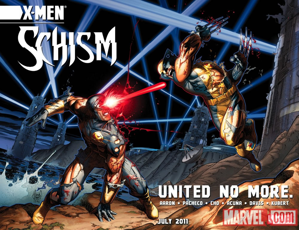 Pois agora, a Marvel fará algo semelhante com os X-Men. A saga Schism (Cisão) irá dividir os mutantes em duas facções. Os editores prometem que será uma ruptura verdadeira e que alguns dos envolvidos poderão “nunca mais olhar na cara um do outro”. A sinopse oficial foi liberada pela Marvel da seguinte maneira: