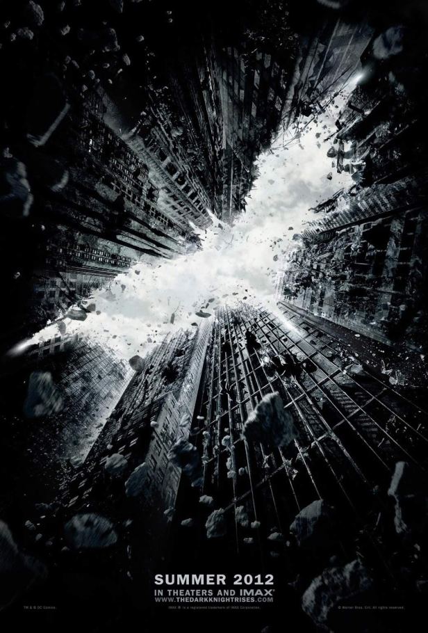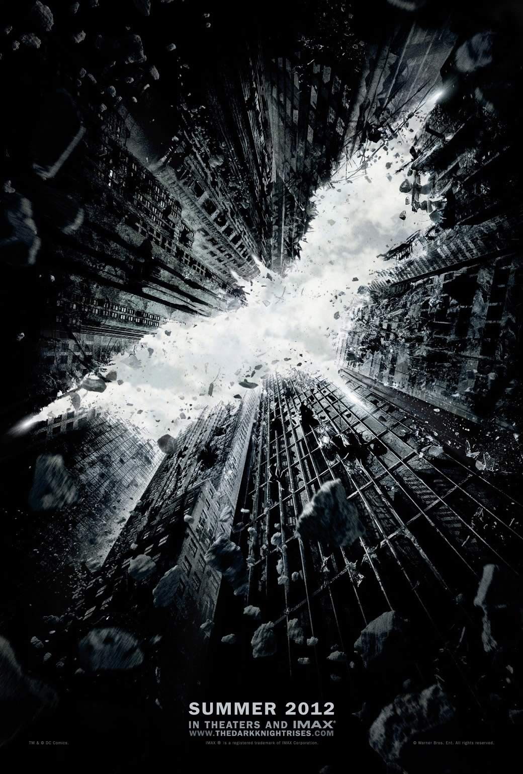 A produção de The Dark Knight Rises, o último capítulo da trilogia do Batman dirigida por Christopher Nolan, acaba de lançar o primeiro teaser poster do filme, que estreia no próximo ano. A imagem traz o logotipo do morcego entre prédios e pedaços de rocha, o que passa a ideia de queda – o roteiro é baseado na saga A Queda do Morcego (Knight Fall, no original) – e os pedregulhos trazem a imagem de “quebrar”, talvez, numa referência ao fato do vilão Bane (Tom Hardy) quebrar as costas do Batman (Christian Bale) tal qual nos quadrinhos.
