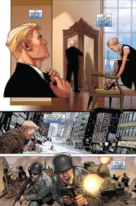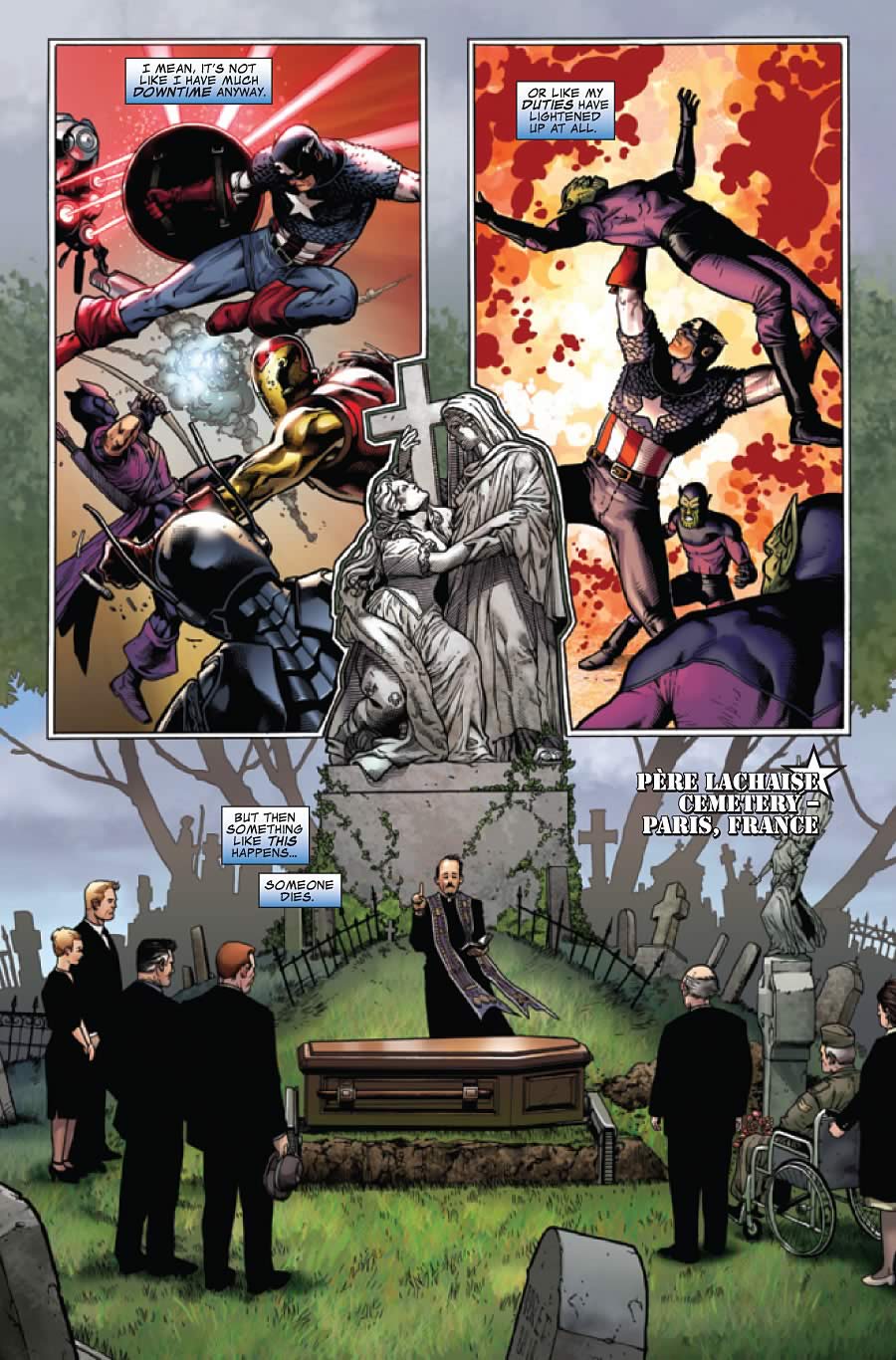 Enquanto isso, chega esta semana às lojas de quadrinhos, as comics shops, a nova revista do Capitão América. É um relançamento usual para chamar a atenção do personagem enquanto se inicia um novo arco de histórias após a saga Fear Itself, que movimenta o Universo Marvel atualmente. O novo arco mantém o aclamado roteirista Ed Brubraker, que cuida das aventuras do Capitão desde 2005, com desenhos do ótimo Steve McNiven (de Novos Vingadores e Guerra Civil). A nova Captain America 01 tem uma capa com uma foto de Chris Evans como o herói, além de capas alternativas comemorativas, feitas por artistas históricos, como John Romita e Neal Adams. O preview da edição mostra cenas de um enterro em Paris.