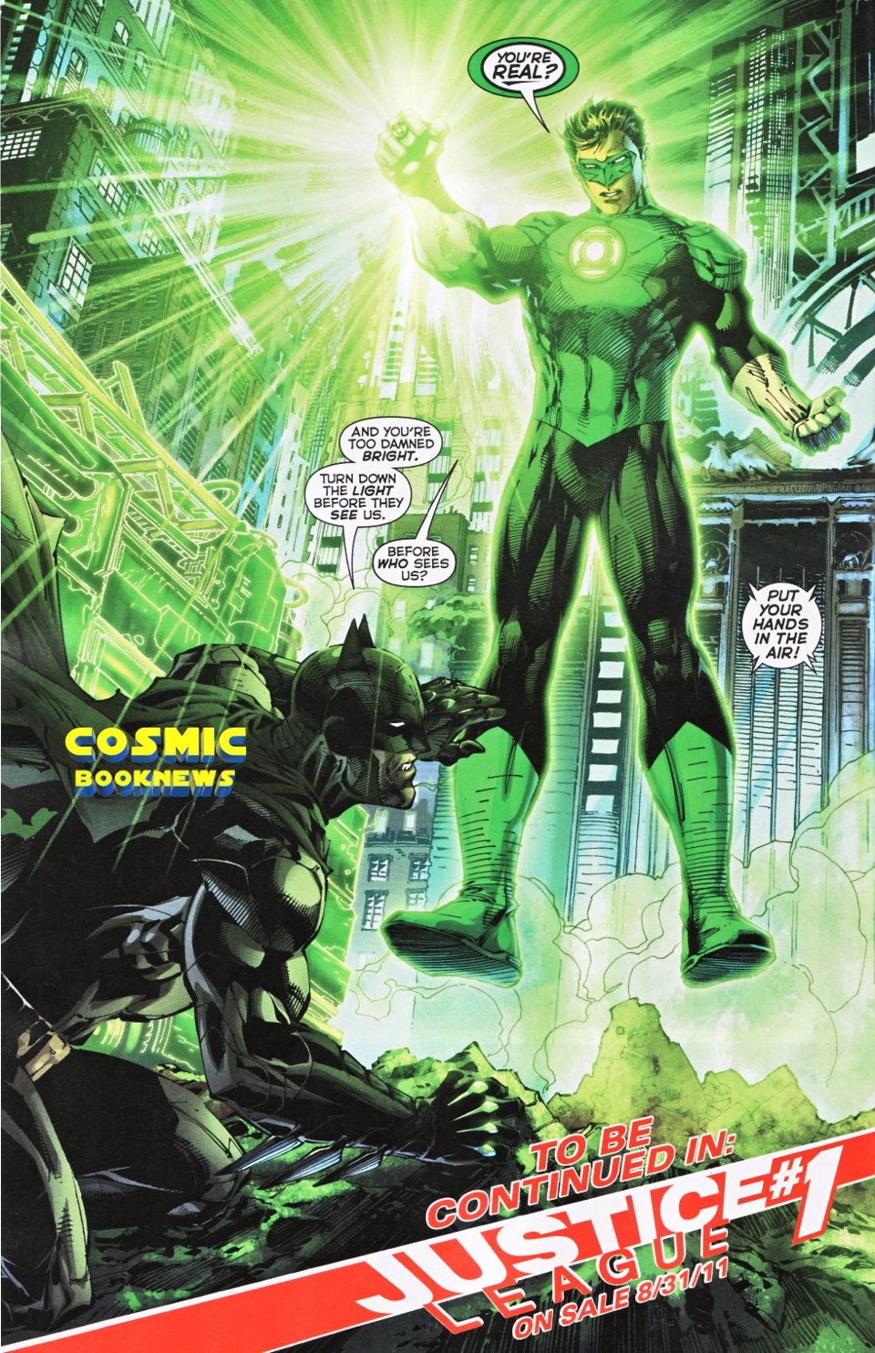 A polícia caça os dois e o Lanterna Verde Hal Jordan aparece ao final, deixando bem claro que aquele é o primeiro encontro dos dois. Jordan diz: “Batman? Você é real?”; confirmando as declarações de Johns, Lee e Dan DiDio – os principais responsáveis pelo reboot – de que no início da nova cronologia, o homem-morcego seria uma lenda urbana, tendo surgido antes dos outros heróis. Mas é somente a aparição do Superman que torna os vigilantes públicos e aceitados pelo público, fazendo surgir o termo “super-herói”.
