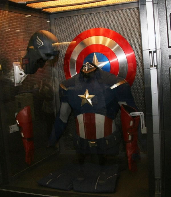 Também está exposto na feira o novo uniforme que o Capitão América usará na produção, mais “moderno” do que o que ele usa em Capitão América – O Primeiro Vingador, que se passa nos anos 1940.