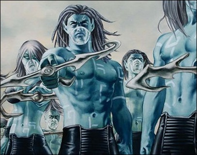 Por isso, embora a presença de Namor seja por demais improvável neste primeiro filme dos Vingadores, os críticos não descartam a possibilidade de seus “irmãos” Atlantes de aparecerem. Nos quadrinhos da Marvel, os Homo Sapiens Sapiens e os Homo Mermanus têm o mesmo ancestral comum, mas os últimos se adaptaram a viver debaixo dágua. Bastante semelhantes aos humanos em aparência, eles têm a pele azul e só respiram debaixo d’água. Seria um opção de colocar uma ameaça da Terra mesmo, em vez de inimigos vindo do espaço.