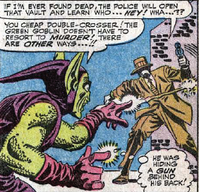 Os leitores provavelmente não notaram a mudança, mas não é coincidência que justamente Amazing Spider-Man 10 é o ponto de partida de um tema que se tornaria cada vez mais comum na publicação: o crime organizado. O Homem-Aranha se lançava contra um vilão chamado O Maioral, que tentava controlar as gangues e sua identidade era revelada como Federick Foswell, um dos jornalistas policiais do Clarim. O bandido ainda usa o trio dos Executores (Enforcers) como auxiliares, grupinho que apareceria com bastante frequência na fase Lee-Ditko: Montana, que usava o laço como arma (sério?); Touro, fortão e burro; e Dan Fancy, baixinho e saltador. De onde esses caras seriam uma ameaça ao crime organizado é algo a se refletir até hoje…