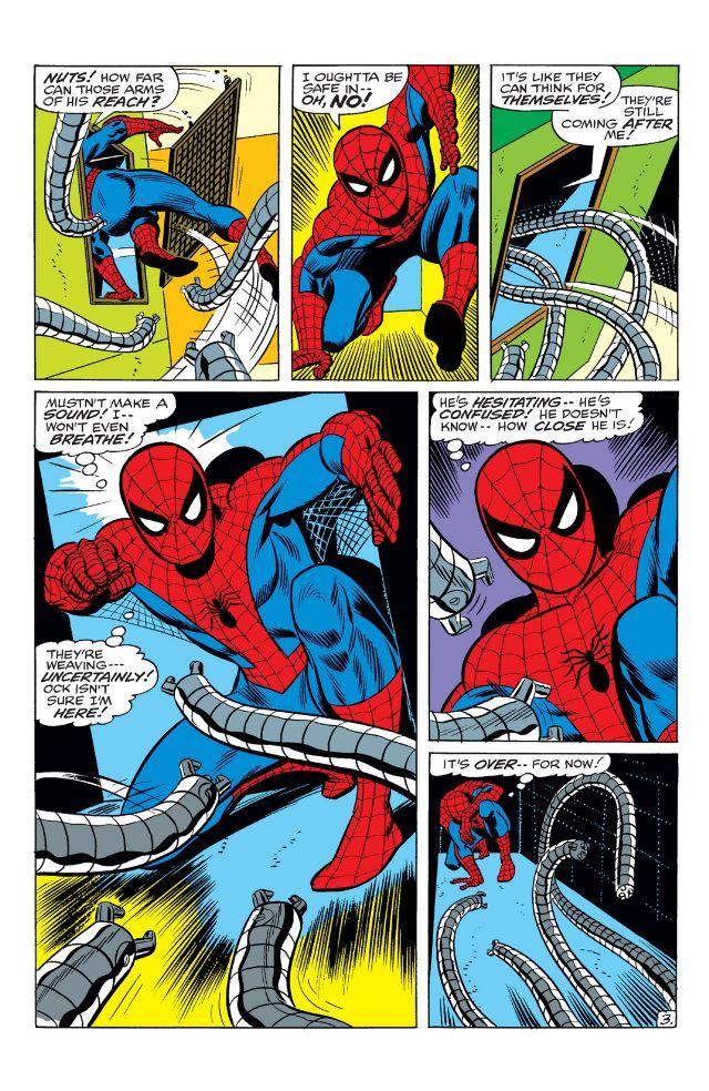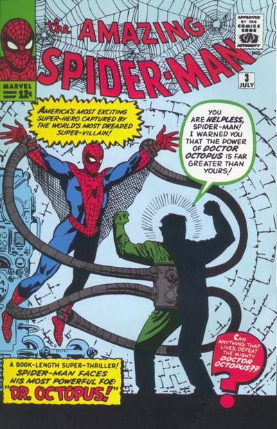 As coisas começam a ficar mais quentes em ASM 03, com a estreia do Doutor Octopus, se notabilizando como o primeiro a dar uma surra no Homem-Aranha. Abalado, Peter pensa em desistir da carreira heroica, mas assiste a uma palestra motivacional do Tocha Humana (aparecendo pela segunda vez na revista) e decide tentar de novo, dessa vez, planejando sua ação contra Octopus e usando o cérebro para derrotá-lo. Essa história firmaria o velho Otto Octavius como o principal vilão aracnídeo nesses primeiros tempos. A revista trouxe ainda uma outra novidade: nesta edição estreou a seção de cartas Spider’s Web, com duas páginas de mensagens dos leitores.