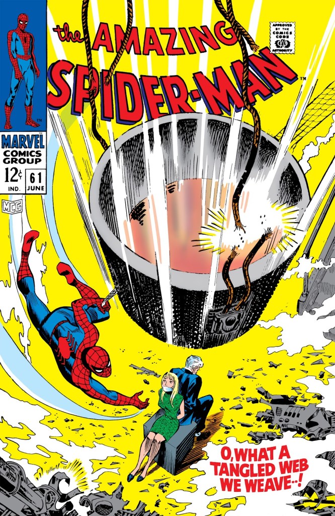 Essa trama se mostra bem mais pé no chão, trazendo elementos da vida real e temas fortes. Ademais, novamente toca no tema de voltar a namorada do herói contra suas identidade uniformizada, algo que Ditko havia usado brevemente com Betty Brant 7 anos antes, mas o trio Lee, Kane e Romita realiza de forma mais dura, convincente e dramática.