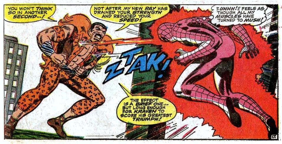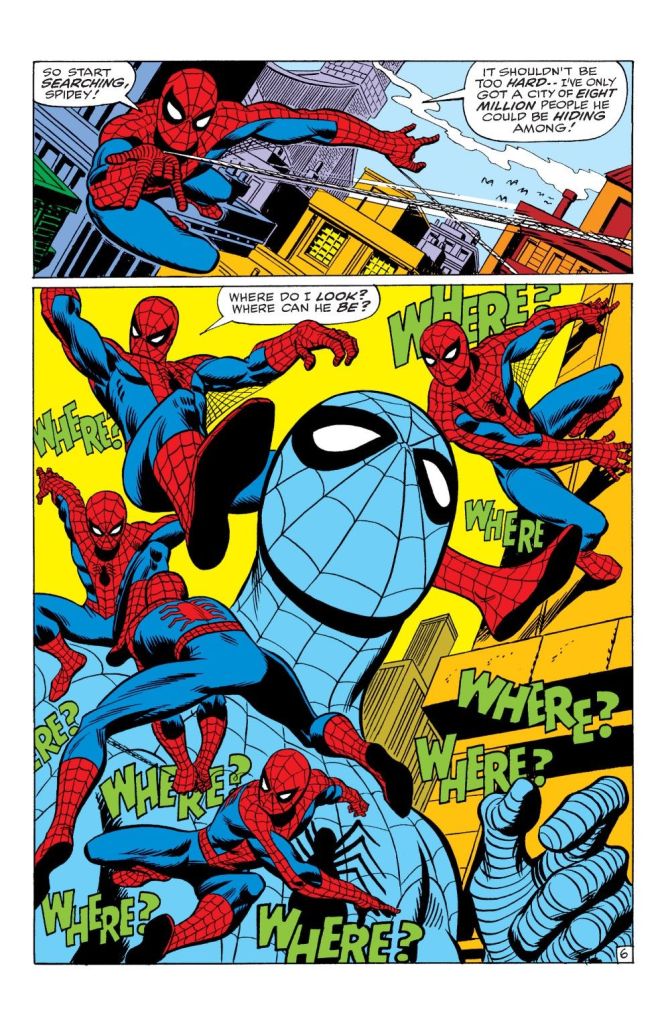 Ademais, vale ressaltar que a cada edição que avançava, Romita deixava a arte de Gil Kane mais natural, de modo que os traços típicos do artista iam gradativamente aparecendo e se tornando reconhecíveis, como modo de uma transição estudada – algo do qual Stan Lee era um grande defensor em vista da traumática mudança Ditko-Romita anos antes. O traço de Kane é menos bonito do que o de Romita e é mais arredondado, o que fica patente na forma como retrata os olhos da máscara do Homem-Aranha; e ele continua a explorar suas angulações não convencionais e a expressividade das figuras humanas, em particular no olhar, ao qual Kane sabia imprimir atenção, perplexidade, alegria e fúria de modo impressionante.