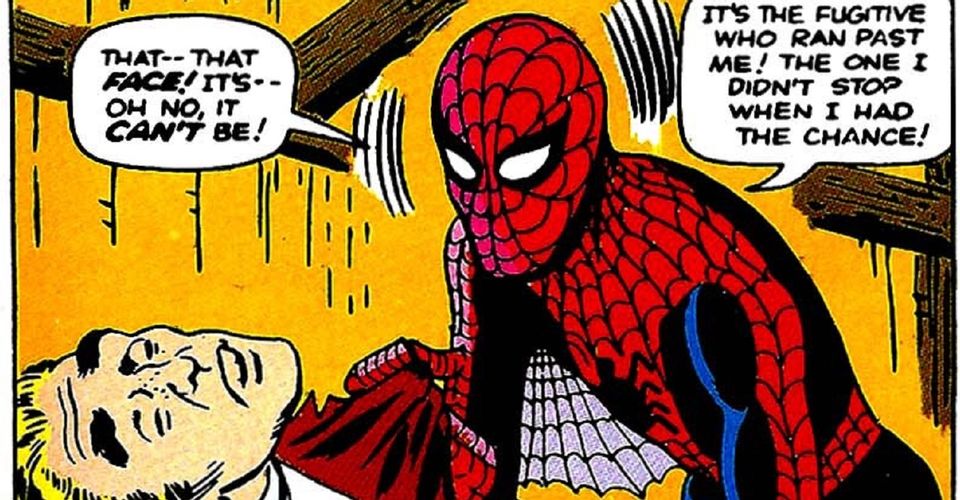 Pouco depois, seu tio Ben Parker, que o criou como se fosse um filho, é assassinado em um assalto comum. Um vingativo Peter parte vestido de Homem-Aranha em busca do assassino apenas para descobrir que é o mesmo ladrão que ele havia deixado fugir. Daí, ele se lembra da máxima do tio: “com grandes poderes vêm grandes responsabilidades”. Então, passa a se dedicar ao combate ao crime, enquanto cuida de manter sua identidade secreta, para poupar a sua Tia May, que é toda a família que lhe resta. Além disso, ela é doente do coração e qualquer choque lhe pode ser fatal. A história curta de oito páginas em que isso ocorre tornou-se um grande sucesso.