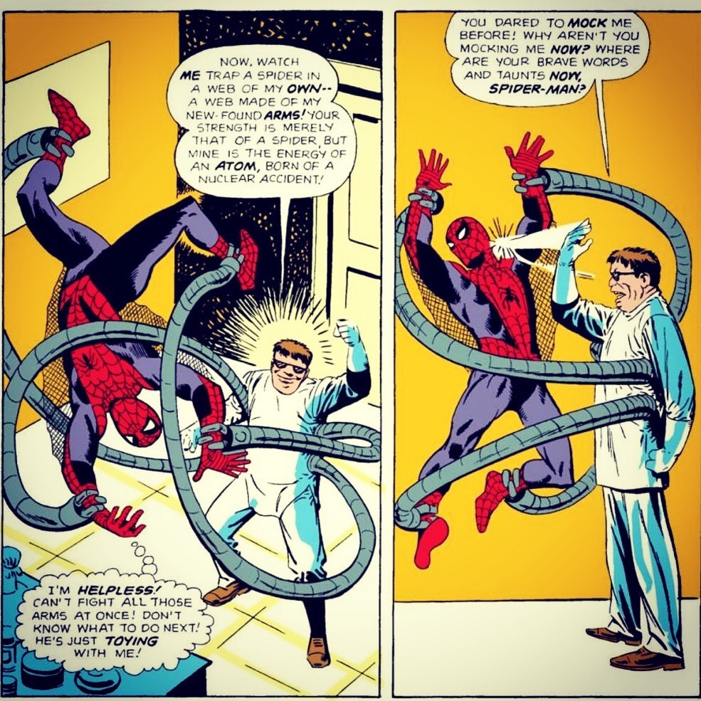 Mas Octopus teria sua chance de brilhar. O vilão de oito braços prossegue em ASM 12, retornando a Nova York em busca de vingança contra o Homem-Aranha. Como o herói salvara Betty Brant, Otto vai raptá-la no Clarim Diário e pede a Jameson um anúncio marcando a batalha para o parque vizinho (presumivelmente, o Central Park). Porém, a sorte de Parker está no ar: o herói está resfriado e, por causa disso, seus poderes estão desaparecendo. Ainda assim, pensa que não tem outra alternativa se não salvar a namorada e vai ao encontro do vilão. Ao chegar, Peter está totalmente sem poderes e, obviamente, é um alvo fácil para Octopus, que o vence sem nenhuma dificuldade e tira a sua máscara!
