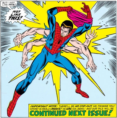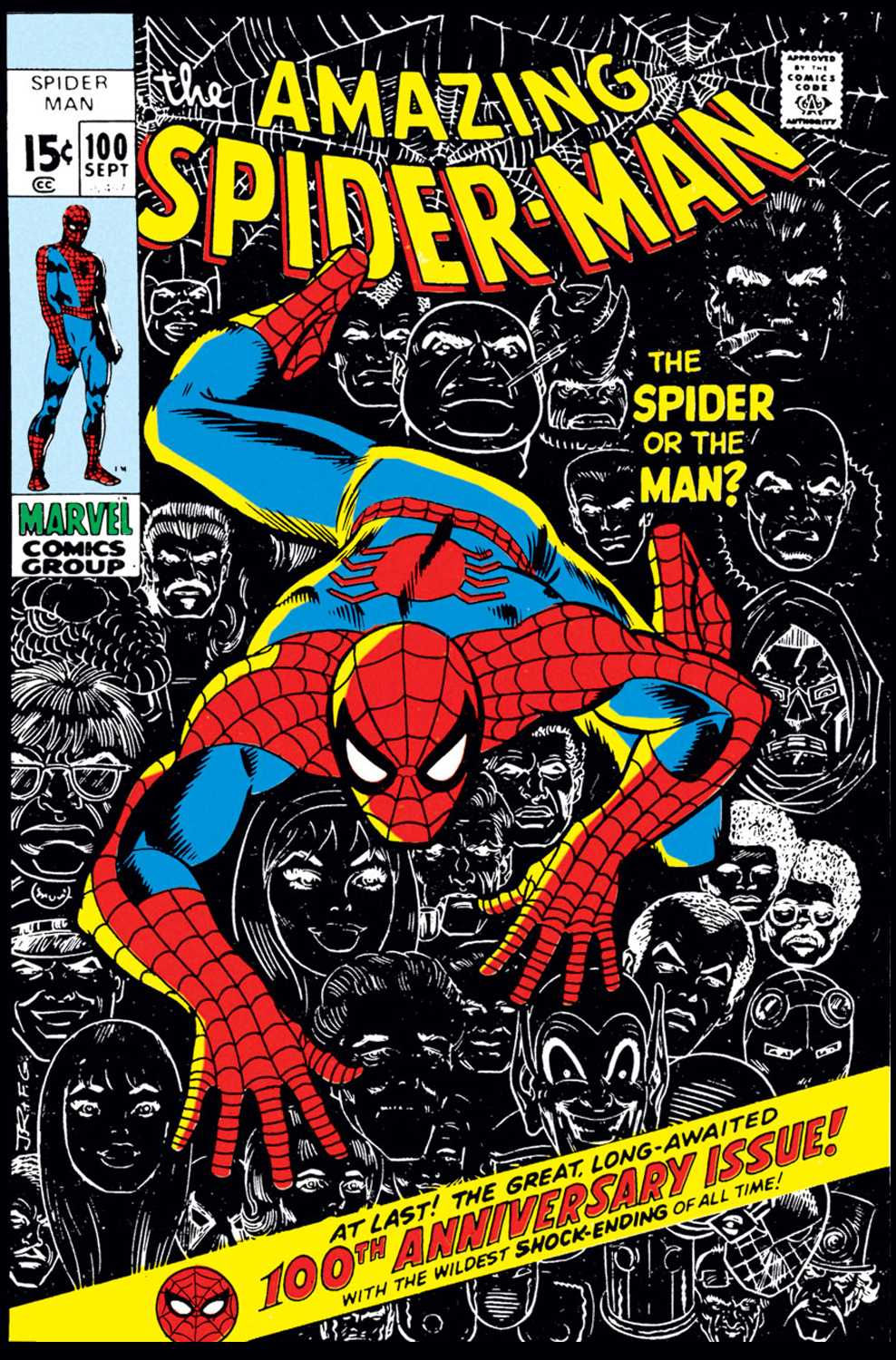 Então, a revista atingiu seu grandíssimo marco: após 8 anos, Amazing Spider-Man chegou à 100ª edição! E Stan Lee decidiu marcar o momento com um tipo de história celebrativa da herança do personagem. Na trama, Peter decide se casar com Gwen e pensa que nunca poderá ter uma vida normal por causa do Homem-Aranha e decide acabar seus poderes, criando uma fórmula para isso, mas ao tomá-la passa mal e tem um pesadelo que vai mostrando todos os seus vilões e seu elenco, terminando com o capitão Stacy dizendo que ele jurou combater o crime e não pode deixar. Ao acordar, Peter descobre aterrorizado que a fórmula não tirou seus poderes de aranha, e sim, lhe adicionou mais quatro membros! Ele virou uma aranha-humana!