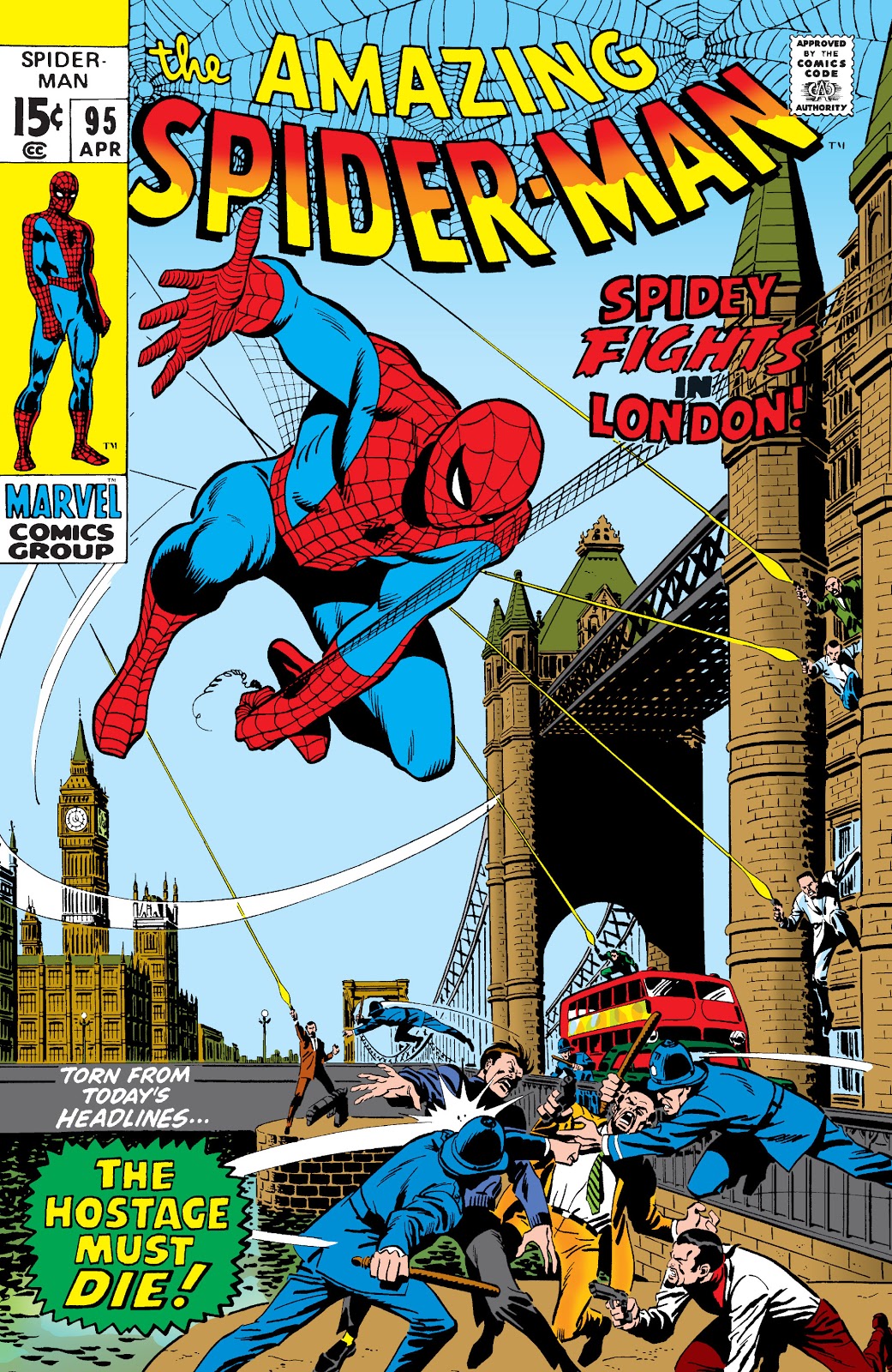 Outra edição prosaica foi a ASM 95, na qual quando Joe Robertson pergunta qual o problema com Peter, ele lhe conta a fuga de Gwen e, bondoso como sempre, arranja uma viagem do fotógrafo a Londres, desde que ele traga material para o Clarim. Peter vai feliz, porém, termina se envolvendo na ação de um grupo terrorista que sequestra seu avião, ameaça uma bomba e captura um delegado americano em uma importante missão, obrigando o Homem-Aranha a combatê-los. É uma desculpa maravilhosa para Romita ilustrar a capital da Inglaterra e todos os seus pontos turísticos, enquanto tocam num tema recorrente de seu tempo: os sequestros de aviões por grupos terroristas e ameaças de bombas (que então nunca terminavam em explosões ou em grande quantidade de mortes). Mas quando Peter percebe que o escalador de paredes está em todas as manchetes, nota que Gwen será capaz de deduzir sua identidade secreta e volta para casa, triste, abatido e sem vê-la. Esta edição ainda teve o pequeno diferencial de trazer o artista Sal Buscema (irmão caçula de John) fazendo o pincel sobre o lápis de Romita. Então, Sal já era um grande desenhista da Marvel, tendo tido um trabalho de destaque com os Vingadores e teria um futuro importantíssimo com o cabeça de teia, mas esta era a primeira vez que trabalhava com o personagem.