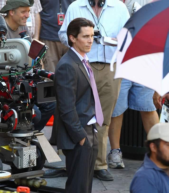 Mas voltando às imagens, um fã registrou uma filmagem do batwing (a nave do Batman) em meio aos sets. Também foram captadas algumas fotografias de Christian Bale como Bruce Wayne de terno no meio da rua e outras de Anne Hathaway (Selina Kyle/Mulher-Gato) vestida elegantemente andando pela rua e, em outra tomada, pegando um táxi. Dias atrás, a moça também foi flagrada gravando uma cena de luta, mas sem o uniforme, na qual defende um garoto de um assaltante.
