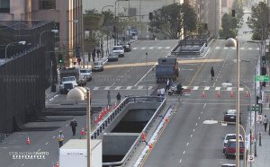 As filmagens externas em Los Angeles de Batman – O Cavaleiro das Trevas Ressurge, o último capítulo da trilogia do homem-morcego comandada por Christopher Nolan, seguem com a segurança acirrada, de modo que muito pouco de informações vêm saindo esses dias. Porém, circula agora a imagem da gravação de uma cena que impressiona pelo uso de efeitos práticos. O caminhão da Liga das Sombras – já visto desde as gravações em Pittsburgh no mês passado – foi registrado simplesmente saindo do nível de cima de uma via elevada para o nível de baixo. E Nolan preferiu filmar fazendo isso de maneira literal, sem usar CGI ou maquetes como normalmente se faz em cenas desse tipo.