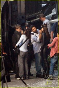 Há também um vídeo de baixa resolução na internet, aparentemente da mesma cena. Gravado pela fresta de uma janela, parece ser uma cena importante. O leitor vai ter que assistir no formato tela cheia e apertar os olhos, mas é possível ver o Batman saindo o batwing; a Mulher-Gato assiste; o homem-morcego passa correndo em direção ao canto esquerdo, ouvimos um barrulho (explosão?); ele volta e passa novamente por ela; Gordon também está presente, um pouco mais afastado; Batman e Mulher-Gato param diante um do outro e se abraçam (talvez se beijem, não dá para ver direito); o herói sobe novamente no batwing; Gordon chega até ele e os dois têm uma conversa um pouco mais longa; a cabine da nave se fecha; e um barulho infernal aparece, que deve ser da decolagem do aparelho.