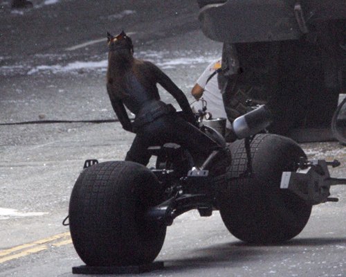 As filmagens externas em Los Angeles, na Califórnia, de Batman – O Cavaleiro das Trevas Ressurge, o último capítulo da trilogia do homem-morcego comandada por Christopher Nolan, continuam sob muito segredo, mas agora permitiram o vazamento de imagens importantes: pela primeira vez é possível observar o visual final da Mulher-Gato (Anne Hathaway). Confirma-se, assim, a promessa de que a felina antiheroína realmente teria um visual com máscara e as orelhas, que se formam quando o visor anteriormente mostrado é levantado ao alto da cabeça, como uma tiara. E a máscara parece muito com aquela flagrada no set de Pittsburgh, já há algum tempo atrás, nas mãos da dublê da atriz.
