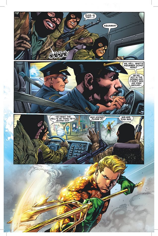 Veja um preview de cinco páginas da nova Aquaman 01, por Johns, Reis e Prado. (clique nas imagens para ampliá-las).