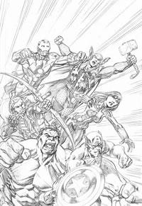 Mas e o Thor? Você pergunta. O destino do deus no trovão nos quadrinhos é incerto após a megassaga Fear Itself, que está correndo atualmente nos Estados Unidos. Não se sabe ao certo se ele vai estrelar tal formação, completando a transposição literal da equipe dos cinemas para os quadrinhos. Mas pode ser que a Marvel esteja apenas fazendo suspense, já que na ilustração promocional à lápis feita por Mark Bagley, o deus do trovão está lá, mas foi apagado – não tão sutilmente, pois ficou um “buraco” na imagem – na versão finalizada da ilustração também divulgada na convenção.