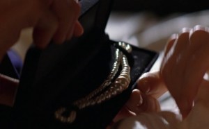 Além das homenagens ao Robin – veja aqui – os internautas perceberam um detalhe curioso, que pode ser uma grande bobagem (ou coincidência) ou revelar uma parte importante da trama: seria o colar de pérolas usado por Selina Kyle (Anne Hathaway) o mesmo que pertenceu à mãe de Bruce Wayne (Christian Bale)?