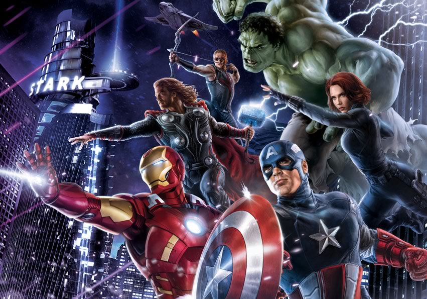 Com a proximidade do lançamento aumentando, a divulgação de Os Vingadores, o épico do Marvel Studios que reunirá nos cinemas pela primeira vez a equipe formada por Capitão América, Thor, Homem de Ferro e Hulk, está esquentando. A Marvel liberou outra arte de merchandising que traz a equipe, a Torre Stark ao fundo e o Quinjet, a nave do grupo.