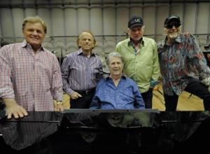 Os Beach Boys em 2012: Johnston, Jardine, Wilson, Love e Marks.