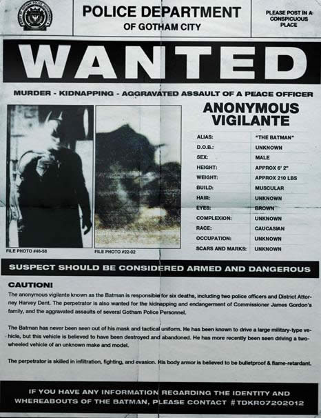 Se você tem qualquer informação sobre a identidade ou paradeiro do Batman, por favor, contacte #TDKR07202012.