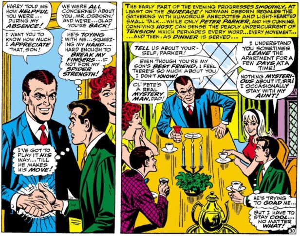 Na trama, Harry Osborn se compadece da situação financeira de seu amigo Peter Parker e decide indicá-lo para trabalhar na Empresa Química do pai, Norman Osborn. O que Harry não sabe é que seu pai foi o Duende Verde e sabia da identidade secreta do Homem-Aranha até esquecê-la em um acidente. A volta da convivência com Peter faz Norman lembrar lentamente de seu passado criminoso. Como uma maneira de se vingar de sua derrota, Osborn promove uma festa para os “amiguinhos” do filho, esperando que Peter apareça e o confronte ou o exponha.