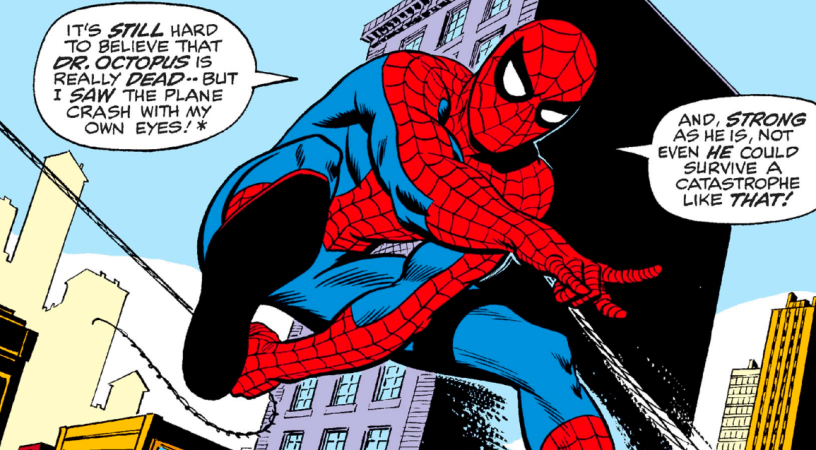 É um momento tocante e dramático, mas o prato principal do arco é mesmo um dos melhores confrontos entre o Homem-Aranha e o Dr. Octopus, fugindo da cadeia e mostrando como seu domínio dos tentáculos de metal é muito maior do que se esperava, ele faz os tentáculos sozinhos o resgatarem da cadeia, sequestra um avião em solo e o destrói, derrota o herói ao jogá-lo de cima de um prédio em cima de um protesto de estudantes… O que pode pará-lo? Peter Parker tem que descobrir uma maneira eficiente de deter o homem que matou o seu quase-sogro e é um de seus piores inimigos. Tudo isso com as artes maravilhosas de Romita e Kane no auge!