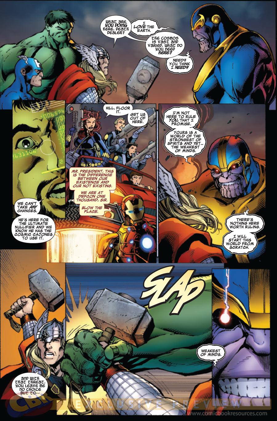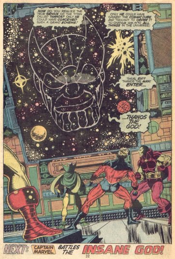 O falatório pegou mal. Thanos estava ao mesmo tempo retornando aos quadrinhos depois de um longo sumiço – ele foi revelado como o principal vilão da nova revista Avengers Assemble, que trazia uma equipe de Vingadores com a mesma formação do filme (Capitão América, Thor, Homem de Ferro, Hulk, Viúva Negra e Gavião Arqueiro) com roteiros de Brian Michael Bendis e desenhos de Mark Bagley, lançada na mesma época do filme – e a editora até anunciou uma minissérie chamada Thanos: The Origin, que prometia contar em detalhes a origem do titã louco, porém, sem participação nenhuma de Starlin.