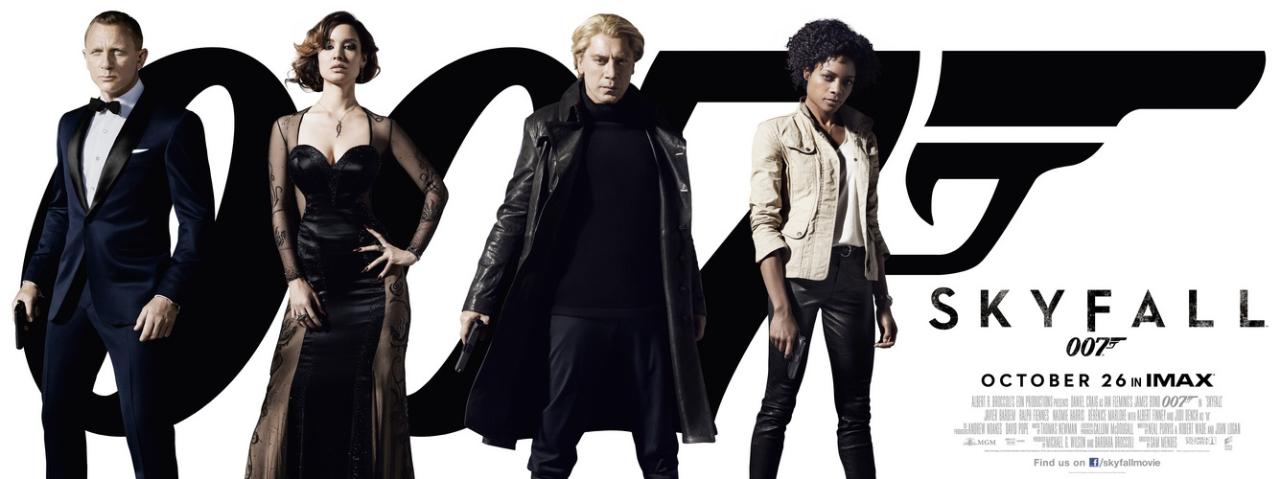 007 – Operação Skyfall, é dirigido por Sam Mendes (de Beleza Americana, Apenas um Sonho), com história de Neal Purvis e Robert Wade e roteiro de John Logan. O elenco traz Daniel Craig (James Bond), Judi Dench (M), Javier Bardem (o vilão Silva), Ralph Fiennes (Gareth Mallory), Naomi Harris (Eve Moneypenny), Ben Whishaw (Q), além de Helen McCrory, Albert Finney, Berenice Marlohe e Ola Rapace. A estreia no Brasil foi em 26 de outubro.