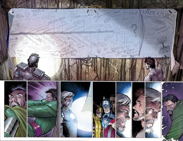 Em 2010, quando a Marvel relançou a revista The Avengers, publicação mensal dos Vingadores, com um novo número 01, escrito por Brian Michael Bendis e desenhado por John Romita Jr., publicou um arco de histórias – sensacional, por sinal – na qual o vilão Kang, o Conquistador (um de seus mais clássicos oponentes) vem do futuro para pedir ajuda ao grupo que impeça o robô Ultron de simplesmente destruir o mundo. No futuro, membros dos Vingadores se encontram com uma versão mais velha de Tony Stark que lhes explica o que houve e lhes dá algumas dicas do futuro para impedir que aquilo ocorra.