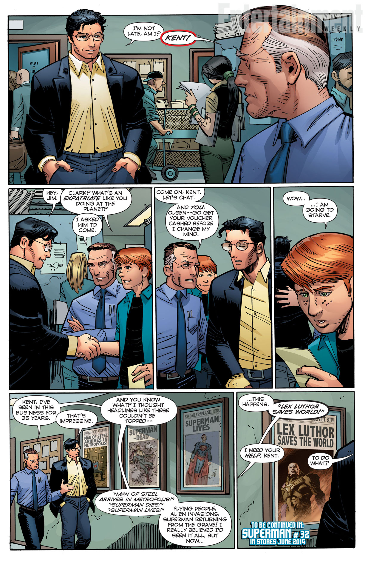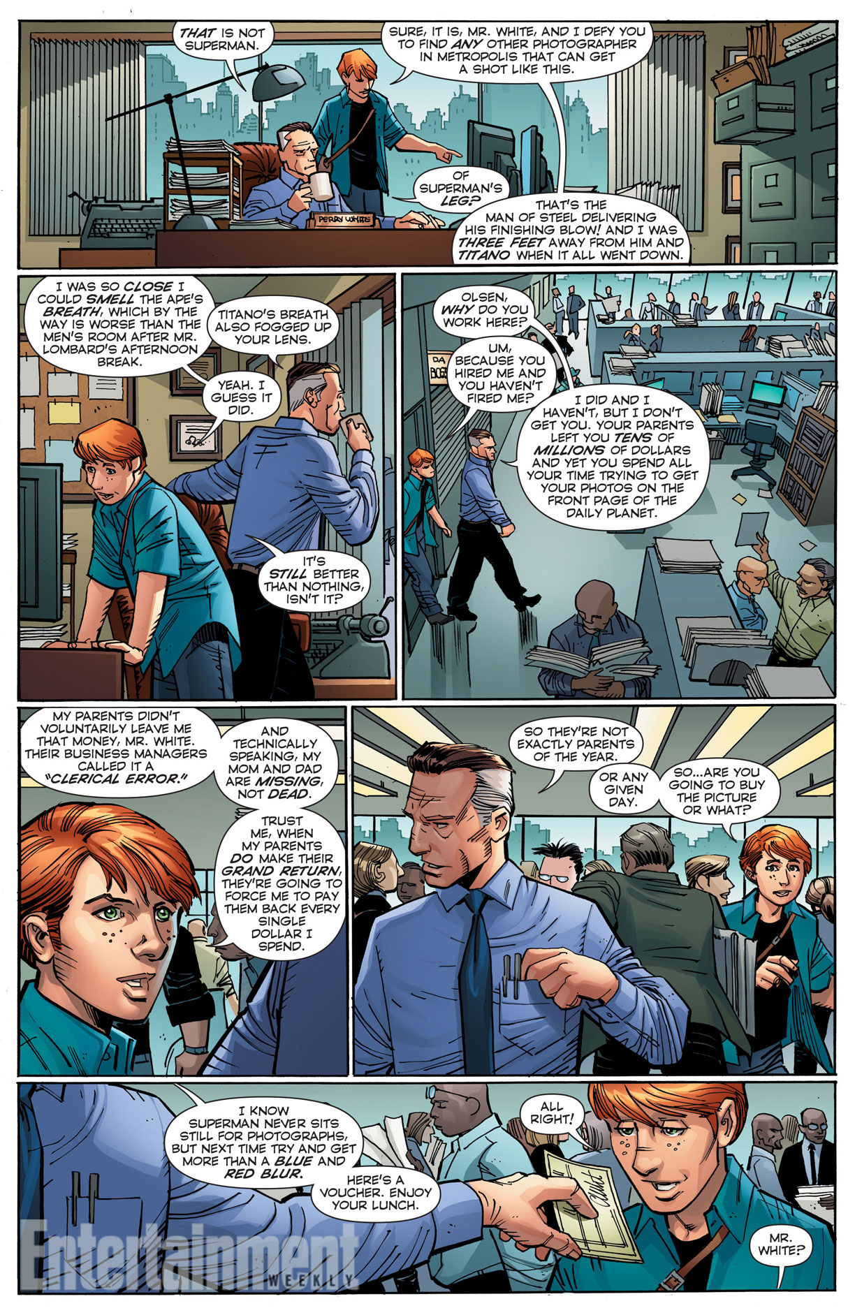 As cenas do preview mostram o homem de aço combatendo um robô gigante em formato de gorila (Titano) e Clark Kent recebendo uma proposta do editor-chefe Perry White para retornar ao Planeta Diário (depois de trabalhar em outras mídias, como TV e internet), aparentemente para desmascarar ações de Lex Luthor. Tudo com a arte expressiva e fantástica de Romita Jr.