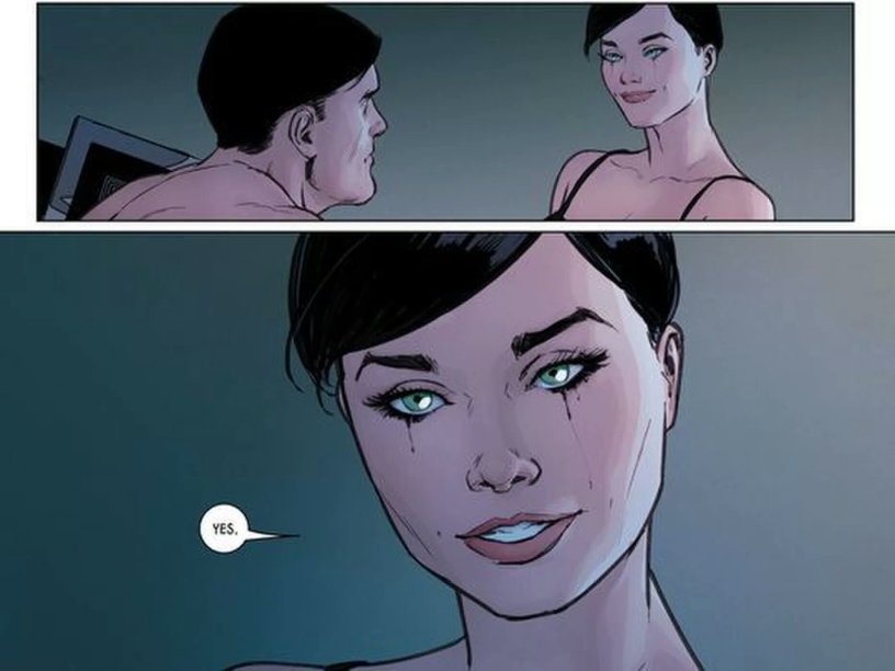 A conversa resulta com a Mulher-Gato dizendo “sim“.